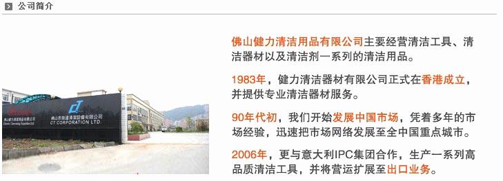 佛山健力清潔用品有限公司公司于1983在香港成立,初時主要業(yè)務(wù)是提供清潔機(jī)械之維修保養(yǎng)及清潔技術(shù)顧問,并兼營機(jī)械銷售,后憑著多年累積之市場及維修保養(yǎng)經(jīng)驗(yàn),直接引進(jìn)歐美各地之專業(yè)產(chǎn)品及技術(shù),而配套成為深受用戶們信賴之健力清潔用品系列。 健力用品供應(yīng)有限公司于1991年展開在中國國內(nèi)之業(yè)務(wù),總部設(shè)于廣東佛山市,而分銷網(wǎng)絡(luò)已遍及各省主要城市。佛山總部除陳列室外,并設(shè)有倉庫及維修中心,以支持各地分銷業(yè)務(wù)需要,務(wù)求能提供高質(zhì)之服務(wù)予使用客戶。